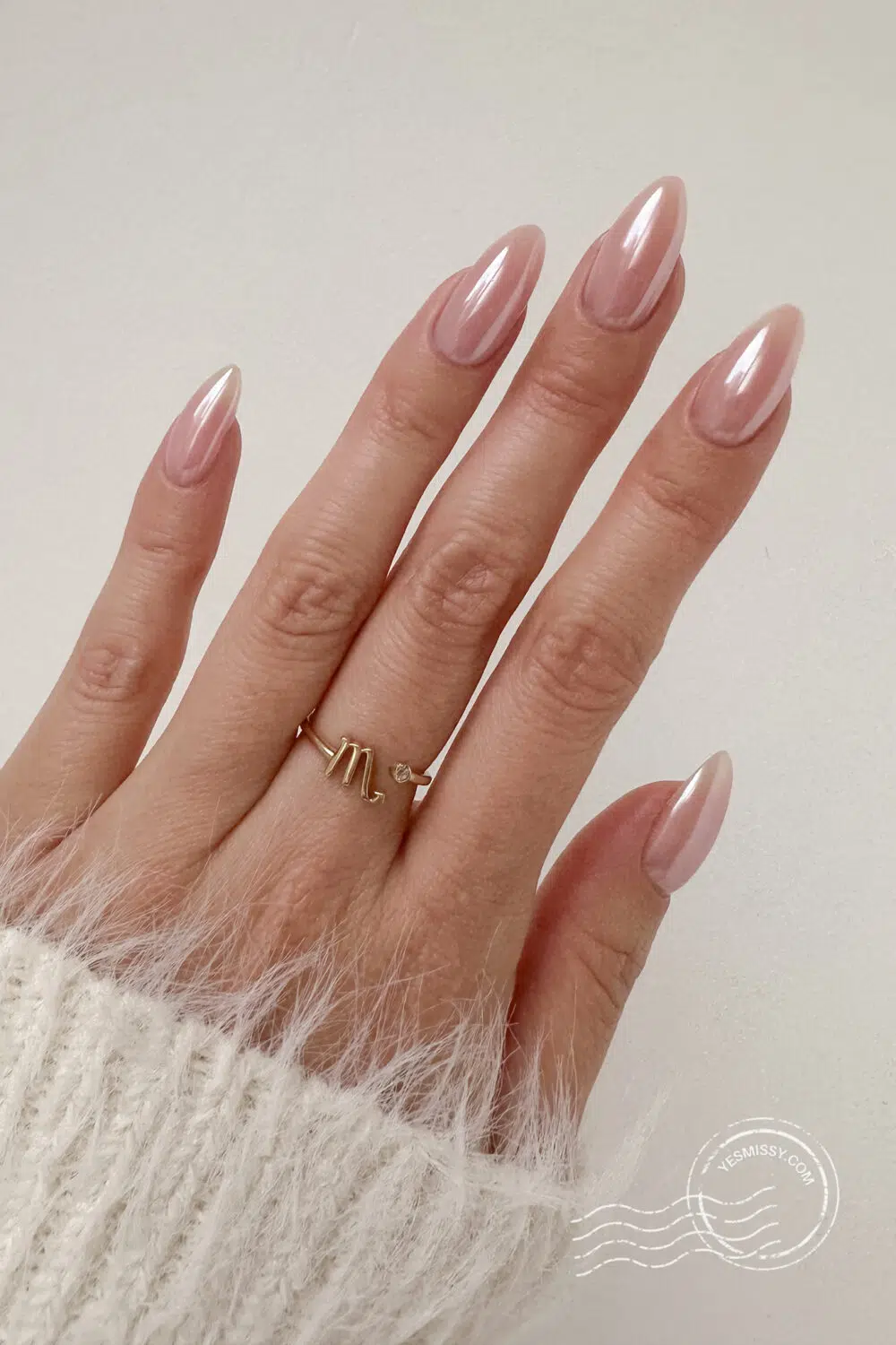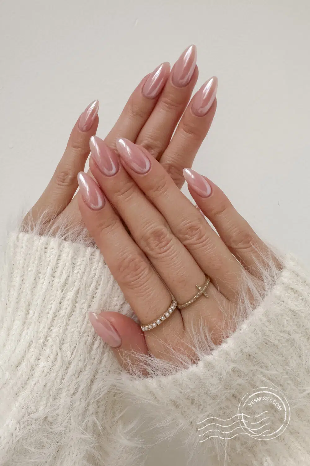 Glazed donut nails, popularized by Hailey Bieber, get a romantic upgrade in soft pink. This chic, minimalist look is perfect for the clean girl aesthetic—classy, elegant, and effortlessly polished. The subtle shimmer adds just the right touch of romance, making it a timeless choice for Valentine’s Day.