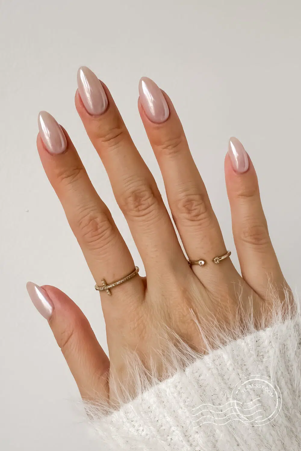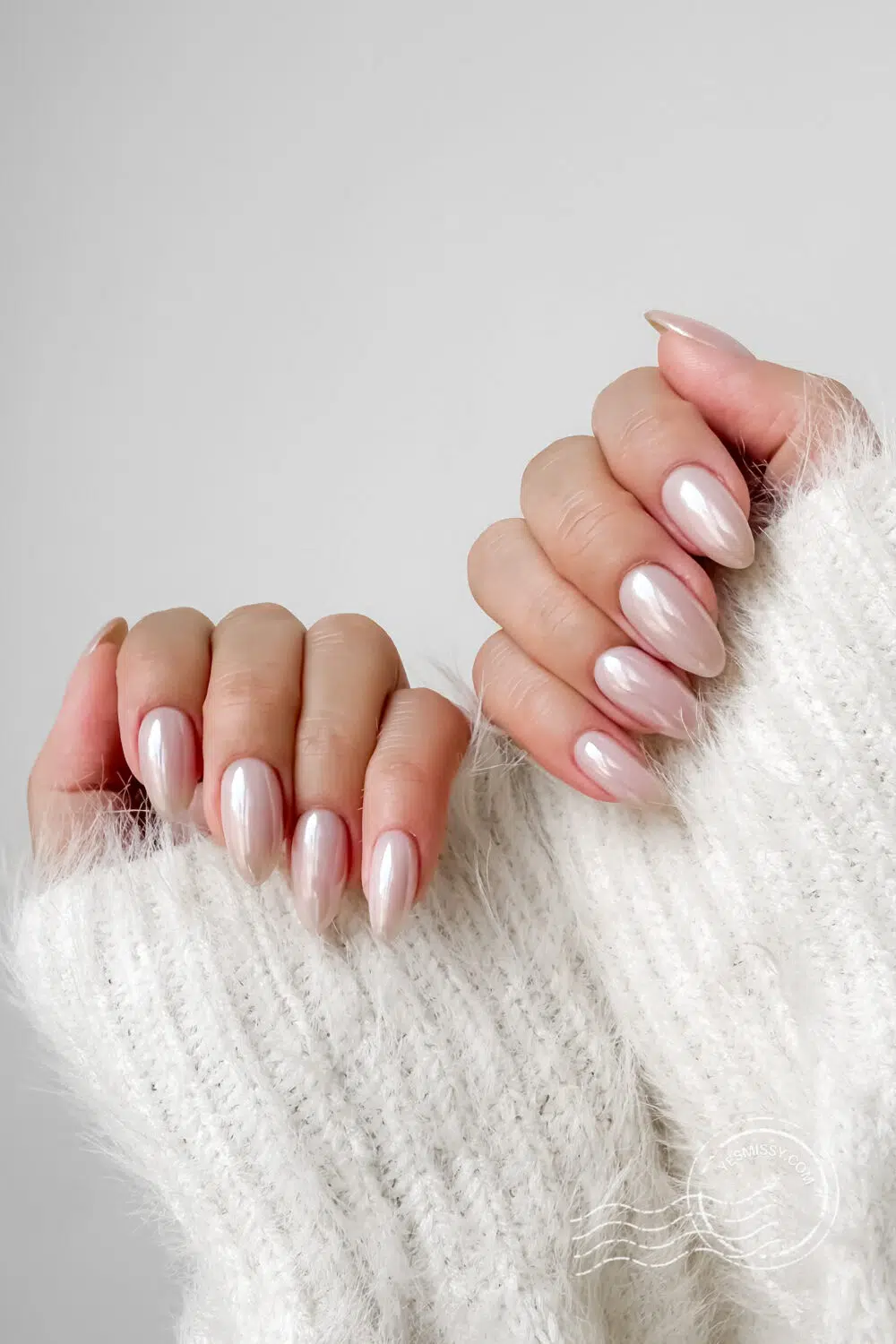 For a softer, more neutral take, a creamy white version of glazed donut nails offers the same elegant, high-shine finish with a timeless feel. The milky base keeps it refined and sophisticated, making it a perfect choice for those who love a quiet luxury aesthetic. Whether for Valentine’s Day or an everyday polished look, this manicure is effortlessly chic.