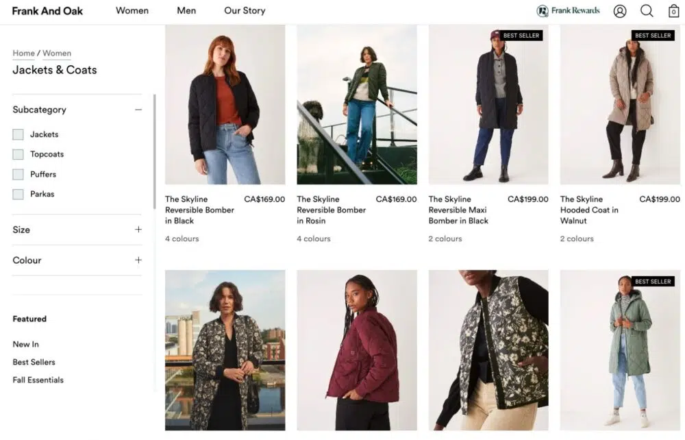 Frank and Oak is a sustainable Canadian lifestyle brand that uses innovative fabrics and recycled materials. Like their clothes, their coats and jackets have a classic timeless look with a modern design elements to a chic and current look.